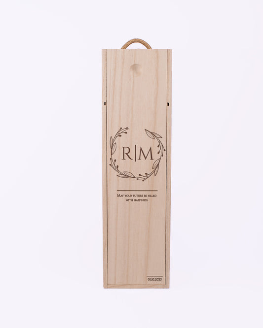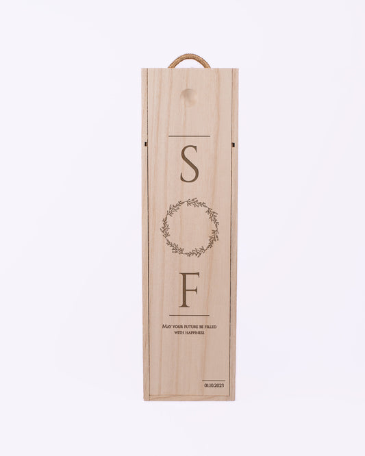 Custom Engraved Sliding Wine Box - Closed Wreath Initials