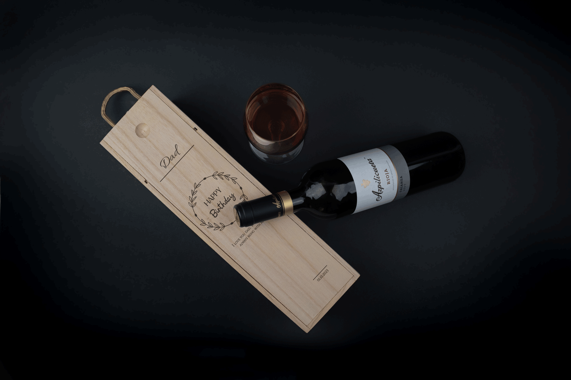 Custom Engraved Sliding Wine Box - Happy Birthday