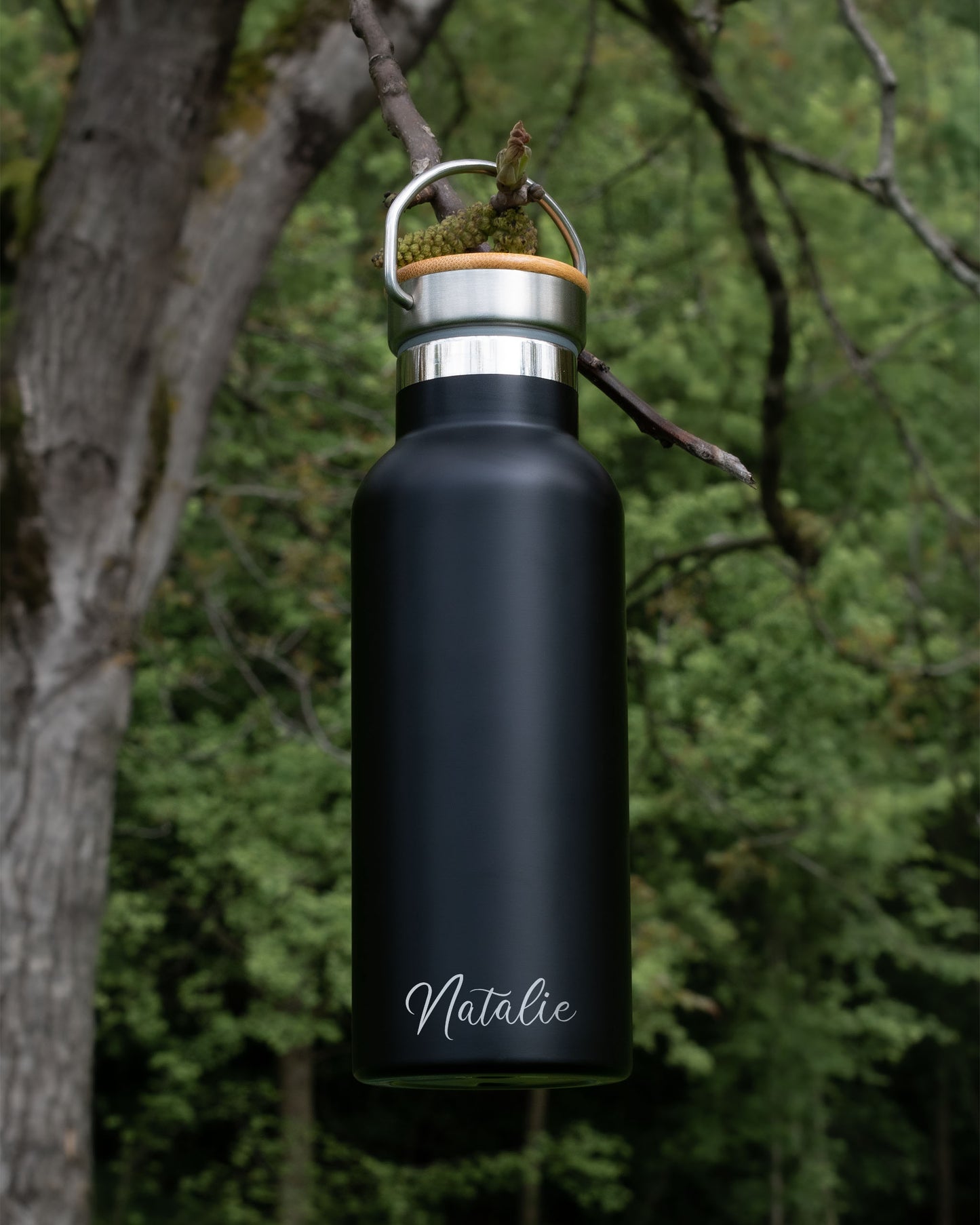 Black Stainless Steel Bamboo lid Bottle - Strong Women