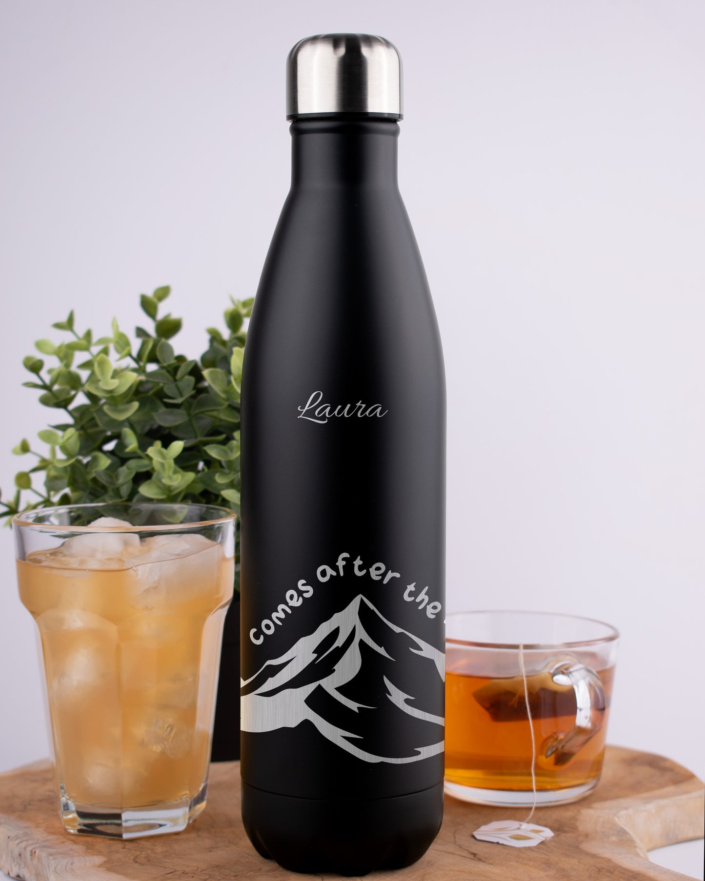 For designs such as quotes, where no name field is shown, your chosen name/quote will be placed neatly on the back of the bottle, ensuring a clean, stylish finish.