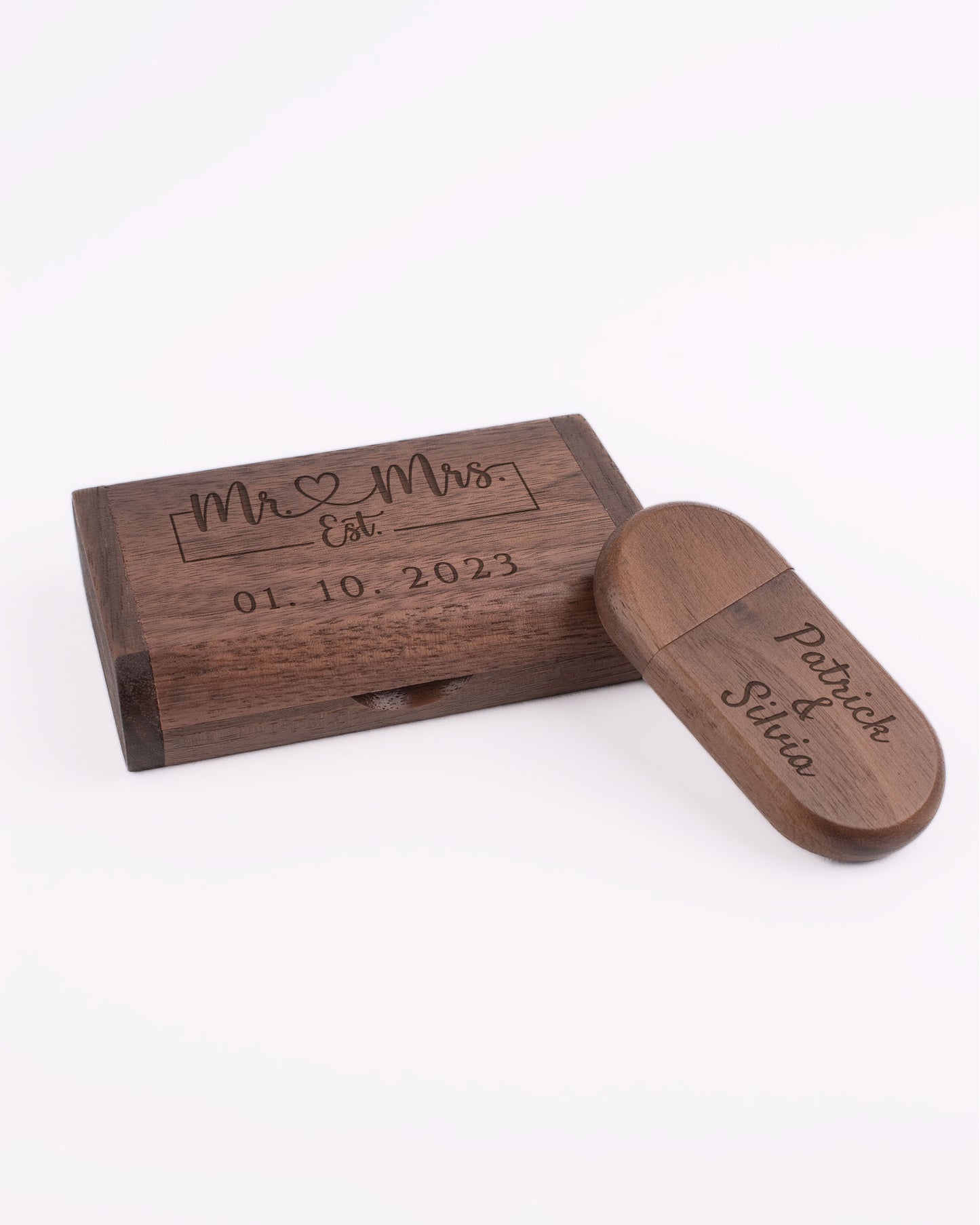 Dark Wood Box with USB Stick - Mr & Mrs